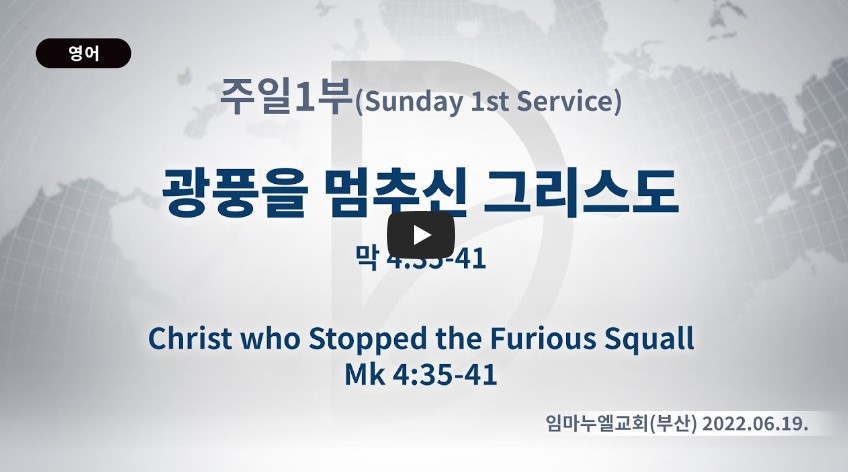 2023년 5월 20일 (토) 분류 주일예배 설교- 주일1부 제목 광풍을 멈추신 그리스도 성경 마가복음 4:35-41 일시/장소 2022년 6월 19일, 임마누엘교회(부산) 설교 류광수 목사 (녹취정리: 차동호 목사) 출