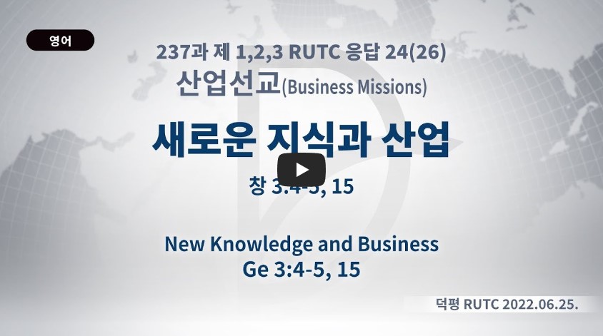 2023년 5월 23일 (화) 분류 산업선교(2022-제123RUTC응답24)- 26 제목 새로운 지식과 산업 성경 창세기 3:4-5, 15 일시/장소 2022년 6월 25일, 덕평RUTC 설교 류광수 목사 (녹취정리: 차동호 목사) 출처 (사)세