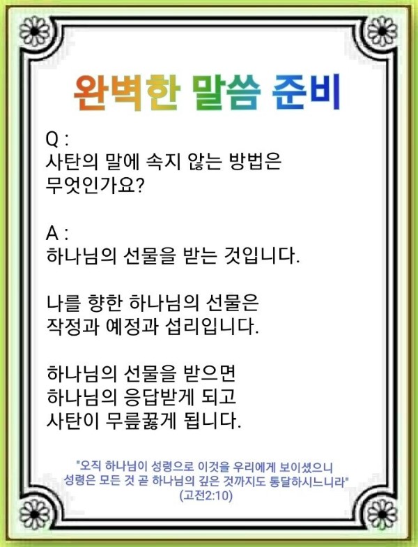 나를 향한 하나님의 완벽한 말씀이 준비되어 있습니다. 그러므로 더 이상 사탄의 말에 속으면 안 됩니다.