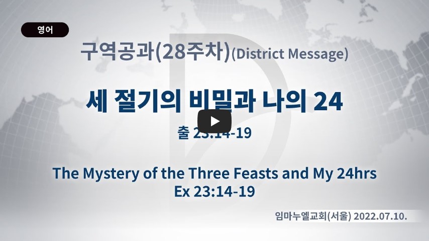 인터넷총국 (홈페이지 http://data.rutc.com) 후원: (국민은행) 856701-04-233309 (사)세계복음화전도협회 인터넷총국 분류 구역공과- 2022년 28과 제목 세절기의 비밀과 나의 24 성경 출애굽기 23:14-19 일시/장