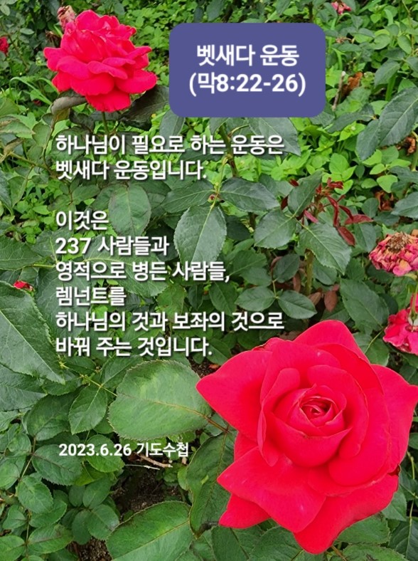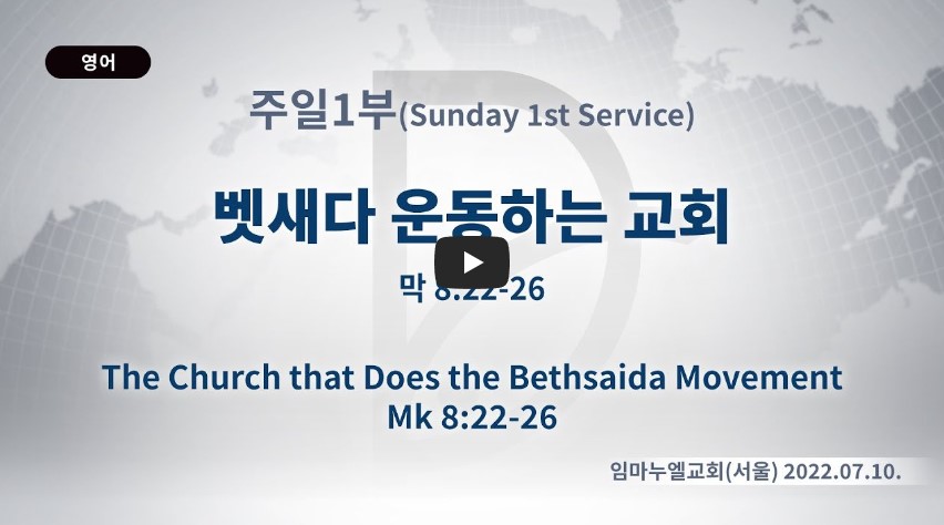 2023년 6월 26일 (월) 분류 주일예배 설교- 주일1부 제목 벳새다 운동하는 교회 성경 마가복음 8:22-26 일시/장소 2022년 7월 10일, 임마누엘교회(서울) 설교 류광수 목사 (녹취정리: 차동호 목사) 출처