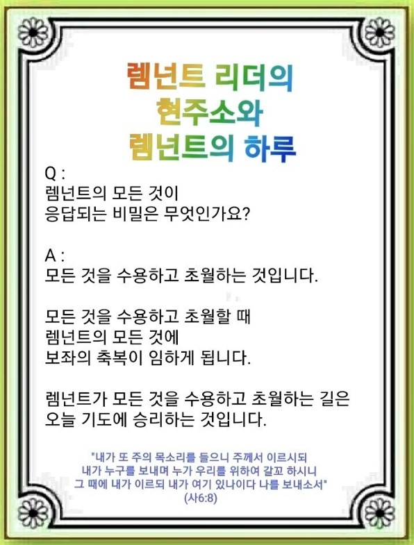 [언약 기도] 하나님께 감사드립니다. 하나님의 자녀라는 것이 최고 응답임을 알게 하시니 감사드립니다. 하나님 자녀에게는 모든 현장, 모든 일, 모든 만남이 응답임을 알고 이 속에서 하나님의 계획을 찾는 렘넌트의 오늘이 되게 하옵소서. 보좌의 축복을 누리며 하나님의 일을 기다리는 렘넌트의 오늘이 되게 하옵소서. 예수 그리스도의 이름으로 기도하옵나이다. 아멘.
