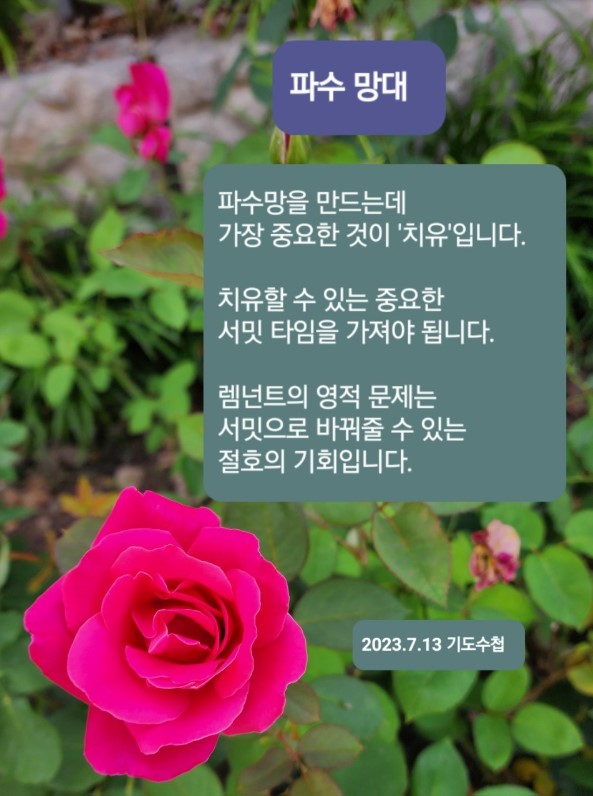 파수망을 만드는데 가장 중요한 것이 '치유'입니다. 치유할 수 있는 중요한 서밋 타임을 가져야 됩니다. 렘넌트의 영적 문제는 서밋으로 바꿔줄 수 있는 절호의 기회입니다.