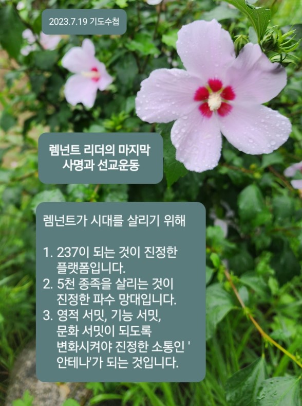 렘넌트가 시대를 살리기 위해 237이 되는 것이 진정한 플랫폼입니다. 이 플랫폼이 없으면 노예나 포로로 가든지, 속국이 되어서 237 해야 됩니다.