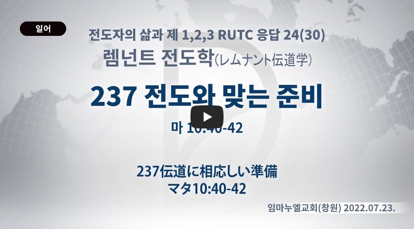 인터넷총국 (홈페이지 http://data.rutc.com) 후원: (국민은행) 856701-04-233309 (사)세계복음화전도협회 인터넷총국 분류 렘넌트전도학(2022-제123RUTC응답24)- 30 제목 237 전도와 맞는 준비 성경 마태복음 10:4