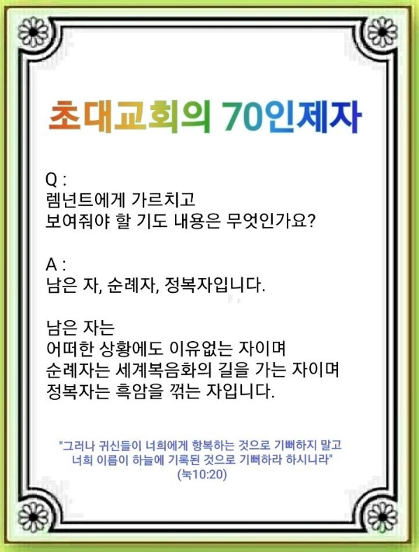인터넷총국 (홈페이지 http://data.rutc.com) 후원: (국민은행) 856701-04-233309 (사)세계복음화전도협회 인터넷총국 분류 흩어진 제자들(2022-제123RUTC응답24)- 30 제목 초대교회의 70인 제자 성경 누가복음 10