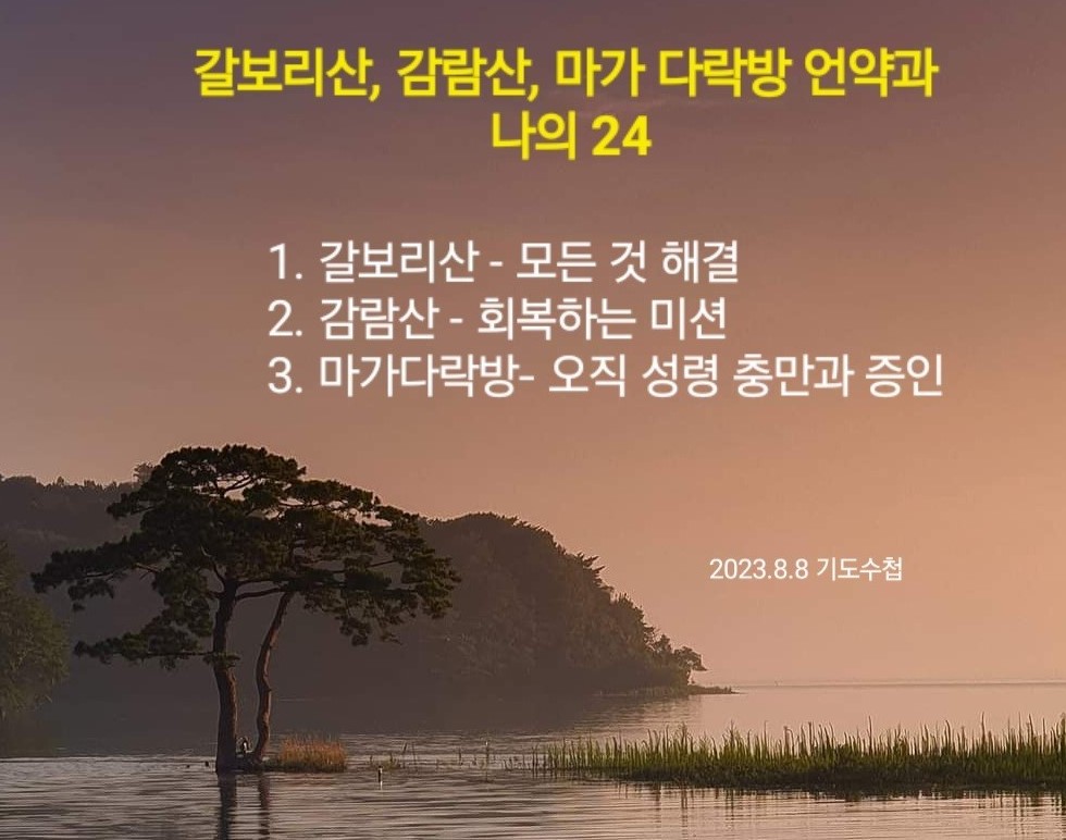 '갈보리산 언약, 감람산 언약, 마가 다락방의 언약'은 처음부터 있었습니다. 중직자나 나이 많은 분들이 이 언약을 누린다면 모세와 같은 역사가 일어날 것입니다. 하나님이 모세에게 피 제사드리러 가라고 하셨습니다. 이 피 제사가 갈보리산 언약입니다. 하나님이 우리와 함께하겠다는 것이 하나님의 나라, 감람산 언약입니다. 그리고 능력을 주겠다고 하셨습니다. 이것이 마가 다락방 언약입니다. 나이 많은 모세, 마가의 어머니 마리아, 예수의 어머니 마리아도 이 언약을 잡았습니다. 이 언약을 잡을 때 어떤 응답이 올까요?