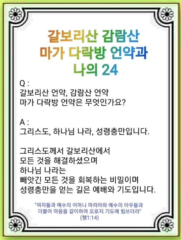 갈보리산, 감람산, 마가 다락방 언약과 나의 24-몬테소리 치유센터