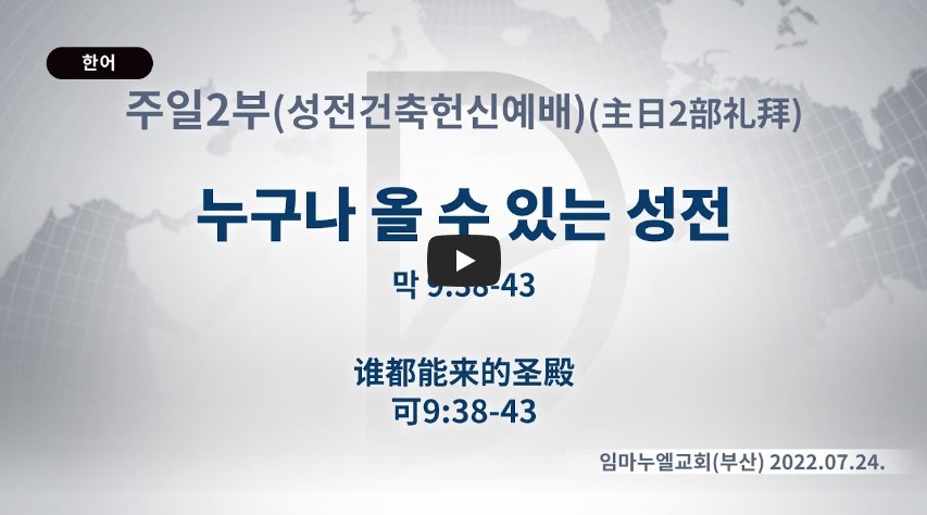 인터넷총국 (홈페이지 http://data.rutc.com) 후원: (국민은행) 856701-04-233309 (사)세계복음화전도협회 인터넷총국 분류 주일예배 설교- 주일2부 제목 (성전건축헌신) 누구나 올 수 있는 성전 성경 마가