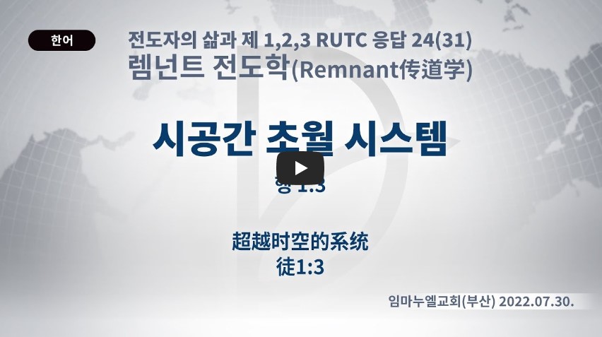 인터넷총국 (홈페이지 http://data.rutc.com) 후원: (국민은행) 856701-04-233309 (사)세계복음화전도협회 인터넷총국 분류 렘넌트전도학(2022-제123RUTC응답24)- 31 제목 시공간 초월 시스템 성경 사도행전 9:3