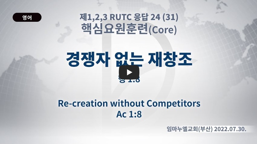 인터넷총국 (홈페이지 http://data.rutc.com) 후원: (국민은행) 856701-04-233309 (사)세계복음화전도협회 인터넷총국 분류 핵심훈련(2022-제123RUTC응답24)- 31 제목 경쟁자 없는 재창조 성경 사도행전 1:8 일시/