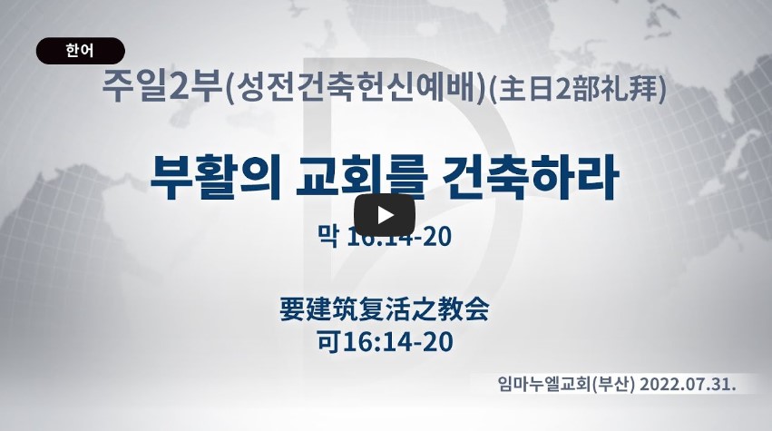 인터넷총국 (홈페이지 http://data.rutc.com) 후원: (국민은행) 856701-04-233309 (사)세계복음화전도협회 인터넷총국 분류 주일예배 설교- 주일2부 제목 (성전건축헌신예배) 부활의 교회를 건축하라 성경