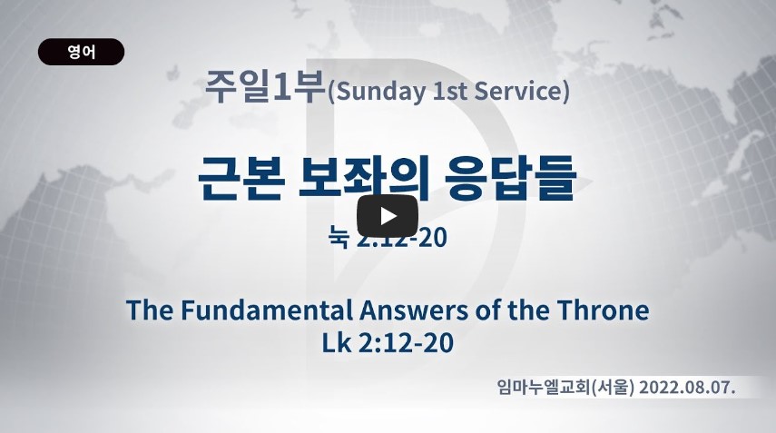 인터넷총국 (홈페이지 http://data.rutc.com) 후원: (국민은행) 856701-04-233309 (사)세계복음화전도협회 인터넷총국 분류 주일예배 설교- 주일1부 제목 근본 보좌의 응답들 성경 누가복음 2:12-20 일시/장소