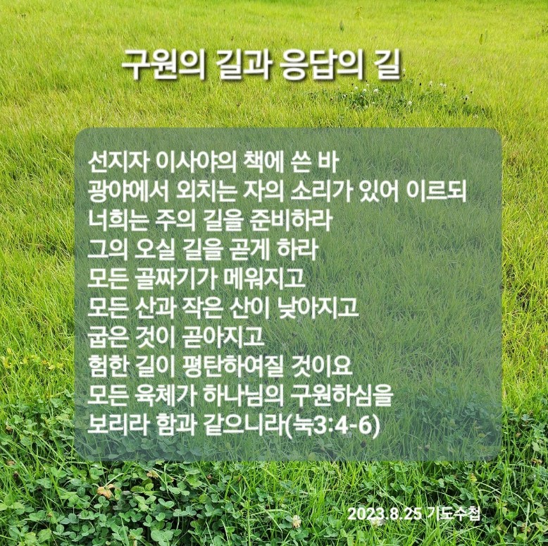누가복음 3:1-6 / 선지자 이사야의 책에 쓴 바 광야에서 외치는 자의 소리가 있어 이르되 너희는 주의 길을 준비하라 그의 오실 길을 곧게 하라 (4)
