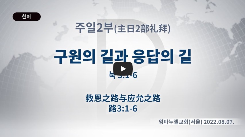인터넷총국 (홈페이지 http://data.rutc.com) 후원: (국민은행) 856701-04-233309 (사)세계복음화전도협회 인터넷총국 분류 주일예배 설교- 주일2부 제목 구원의 길과 응답의 길 성경 누가복음 3:1-6 일시/장