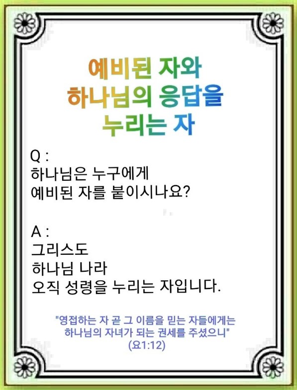 요한복음 1:12 / 영접하는 자 곧 그 이름을 믿는 자들에게는 하나님의 자녀가 되는 권세를 주셨으니