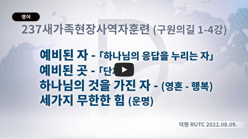 2022.08.09. 2022년 8월 237새가족현장사역자훈련 1강(구원의 길 2과)