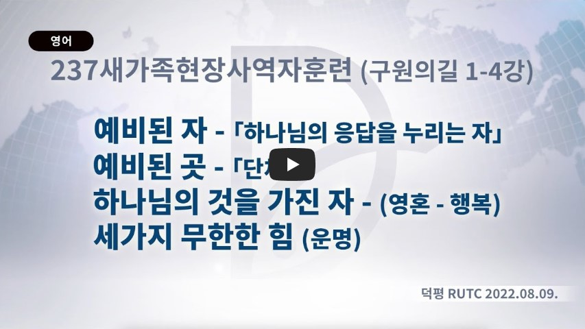 2022.08.09. 2022년 8월 237새가족현장사역자훈련 1강(구원의 길 4과)