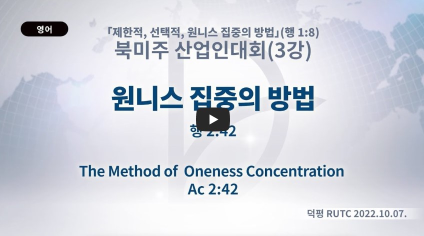 인터넷총국 (홈페이지 http://data.rutc.com) 후원: (국민은행) 856701-04-233309 (사)세계복음화전도협회 인터넷총국 분류 2022- 북미주 산업인대회 제목 3강: 산업인, 중직자가 항상 할 것③ - “Oneness집중
