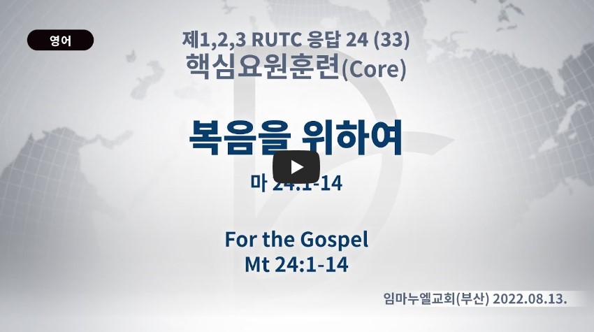 인터넷총국 (홈페이지 http://data.rutc.com) 후원: (국민은행) 856701-04-233309 (사)세계복음화전도협회 인터넷총국 분류 핵심훈련(2022-제123RUTC응답24)- 33 제목 복음을 위하여 성경 마태복음 24:1-14 일시/장