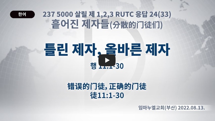 인터넷총국 (홈페이지 http://data.rutc.com) 후원: (국민은행) 856701-04-233309 (사)세계복음화전도협회 인터넷총국 분류 흩어진 제자들(2022-제123RUTC응답24)- 33 제목 틀린 제자, 올바른 제자 성경 사도행전