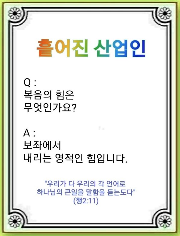 15나라 사람들이 예루살렘에 모였습니다. 메시야 언약을 바라보고 찾아온 이들이 바리새 교회가 아니라 마가다락방교회를 선택했습니다. 눈에 안 보이는 것을 본 것입니다. 이들의 산업이 참된 선교의 통로가 되는 시간표였습니다.