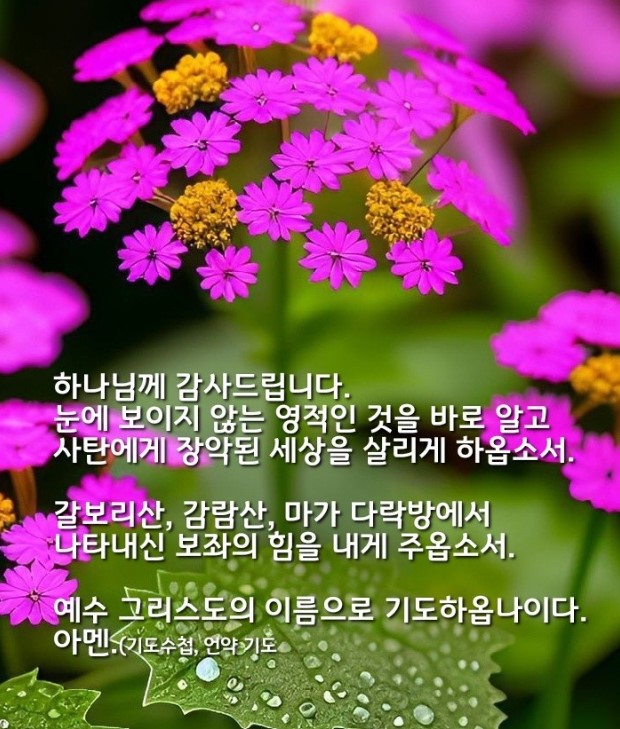 [언약 기도] 하나님께 감사드립니다. 눈에 보이지 않는 영적인 것을 바로 알고 사탄에게 장악된 세상을 살리게 하옵소서. 갈보리산, 감람산, 마가 다락방에서 나타내신 보좌의 힘을 내게 주옵소서. 예수 그리스도의 이름으로 기도하옵나이다. 아멘.
