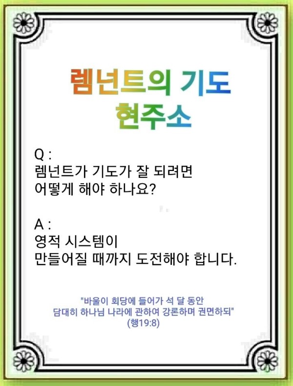 ▷ 렘넌트의 기도 현주소(행 19:8)