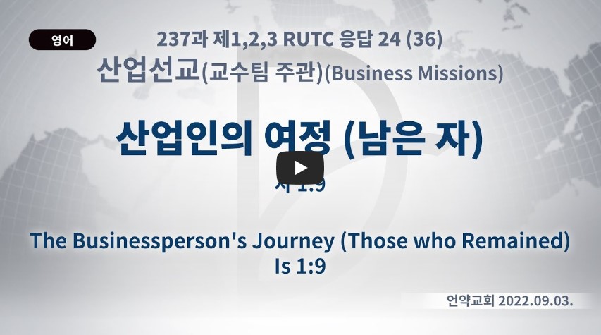 2023년 10월 9일 (월) 분류 산업선교(2022-제123RUTC응답24)- 36 제목 (교수팀 주관) 산업인의 여정(남은 자) 성경 이사야 1:9 일시/장소 2022년 9월 3일, 언약교회 설교 류광수 목사 (녹취정리: 차동호 목사