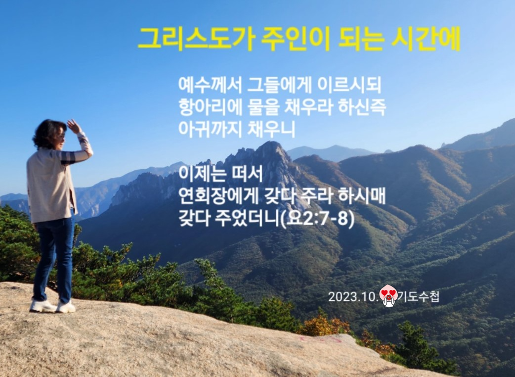2023년 10월 18일 (수) 분류 주일예배 설교- 주일1부 제목 그리스도가 주인이 되는 시간에 성경 요한복음 2:1-11 일시/장소 2022년 9월 11일, 임마누엘교회(부산) 설교 류광수 목사 (녹취정리: 차동호