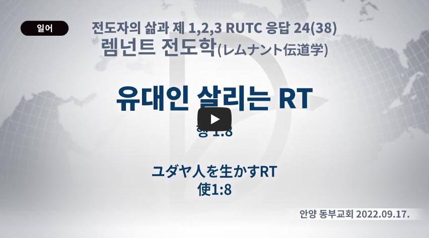 2023년 10월 21일 (토) 분류 렘넌트전도학(2022-제123RUTC응답24)- 38 제목 유대인 살리는 RT(렘넌트) 성경 사도행전 1:8 일시/장소 2022년 9월 17일, 안양 동부교회 설교 류광수 목사 (녹취정리: 차동호 목