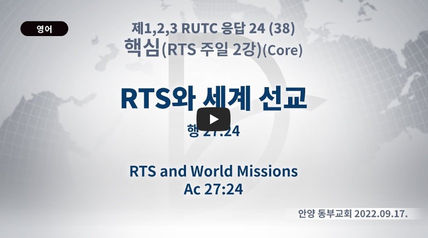 인터넷총국 (홈페이지 http://data.rutc.com) 후원: (국민은행) 856701-04-233309 (사)세계복음화전도협회 인터넷총국 분류 핵심훈련(2022-제123RUTC응답24)- 38 제목 (RTS주일2강) RTS와 세계 선교 성경 사도행전 2