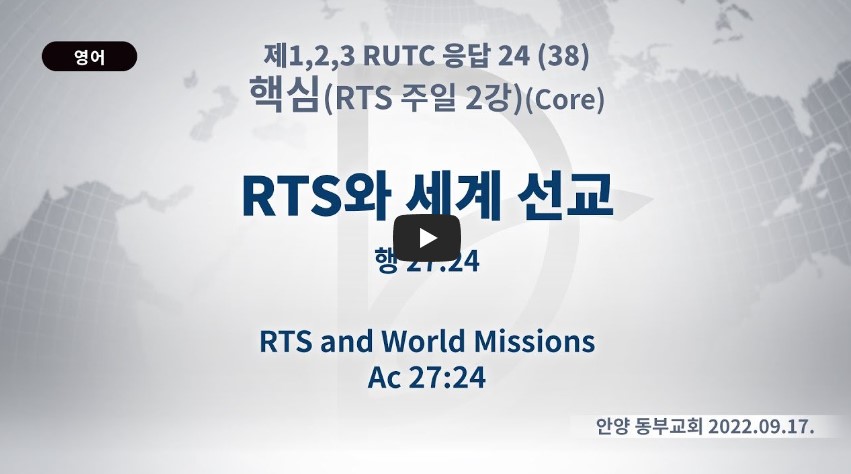 인터넷총국 (홈페이지 http://data.rutc.com) 후원: (국민은행) 856701-04-233309 (사)세계복음화전도협회 인터넷총국 분류 흩어진 제자들(2022-제123RUTC응답24)- 38 제목 RTS와 흩어진 제자들 성경 로마서 16:23