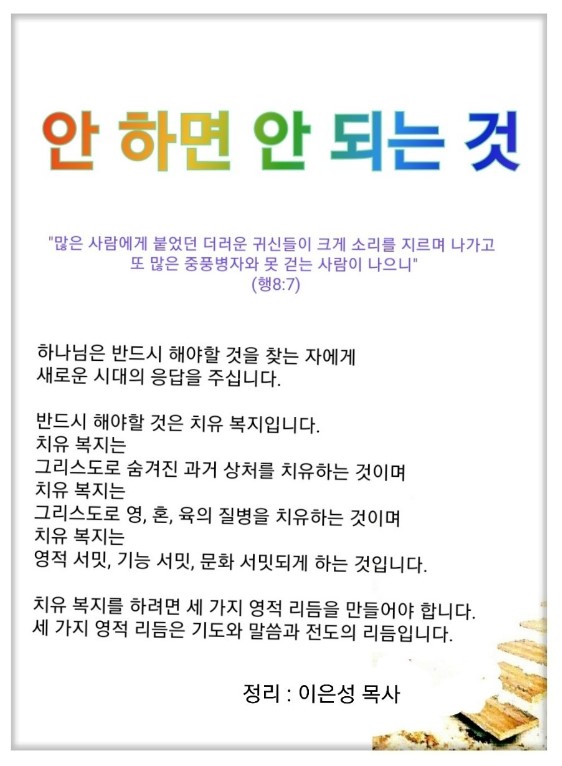 인터넷총국 (홈페이지 http://data.rutc.com) 후원: (국민은행) 856701-04-233309 (사)세계복음화전도협회 인터넷총국 분류 주일2부 예배- 2023년 제123RUTC응답 25 제목 (치유복지위원회) 안하면 안되는 것 성