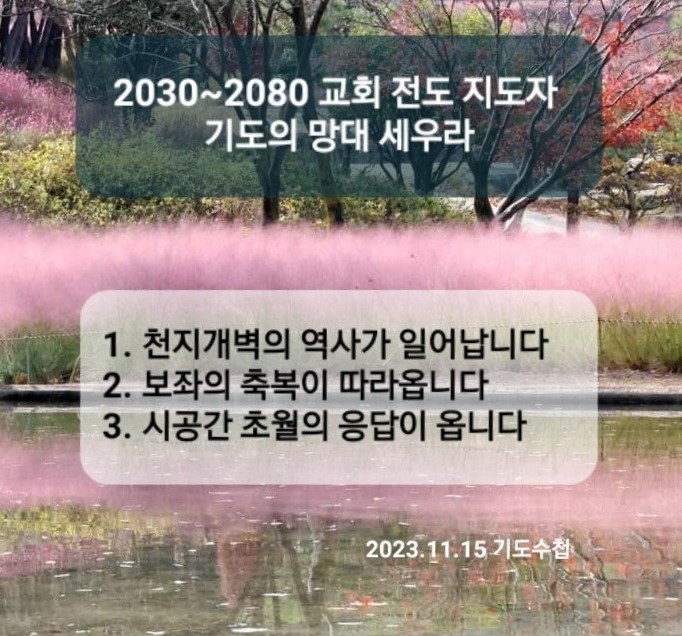 기도의 맛을 알면 보좌의 축복을 누리게 됩니다. 이것을 영적 파수 망대라고 합니다. 이러면 성령 충만한 역사가 일어나고(행 2:1-13), 미래가 실제 응답으로 보이게 됩니다.(행 2:17-18) 그 결과 3천 제자가 일어났습니다.(행 2:41-42) 영적 파수망이 되면 오직·유일성·재창조의 기능 파수망과 사람 살리는 문화 파수망이 나오게 됩니다.