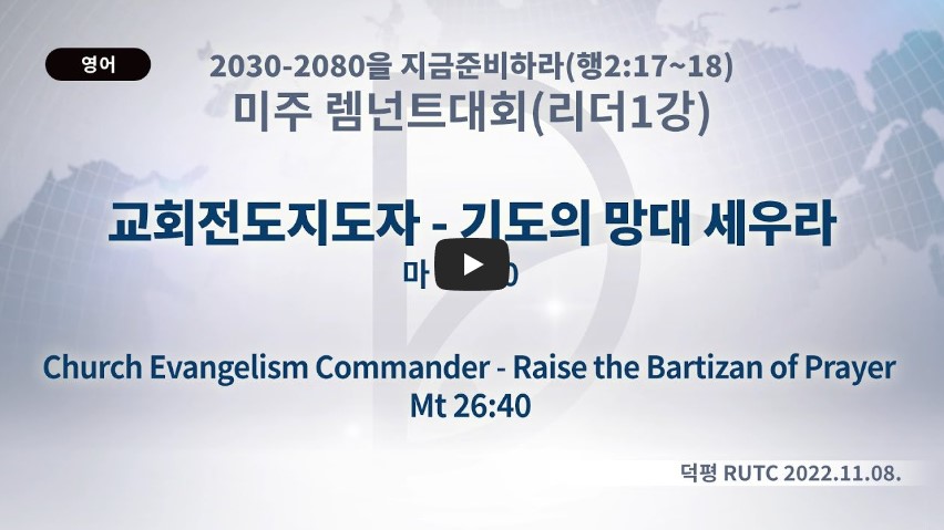 2022- (미국) RCA 리더 수련회 제목 1강: 교회 전도 지도자 - “기도의 망대를 세우라” 성경 마태복음 26:40 일시/장소 2022년 11월 22일, 덕평RUTC(온라인) 설교 류광수 목사 (녹취정리: 차동호 목