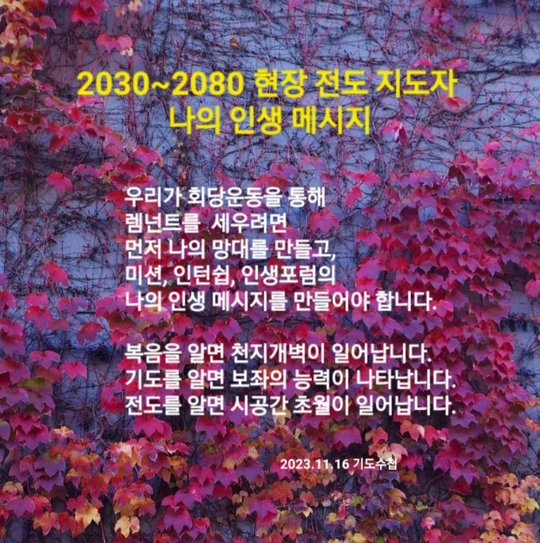 2030~2080 현장 전도 지도자 – 나의 인생 메시지