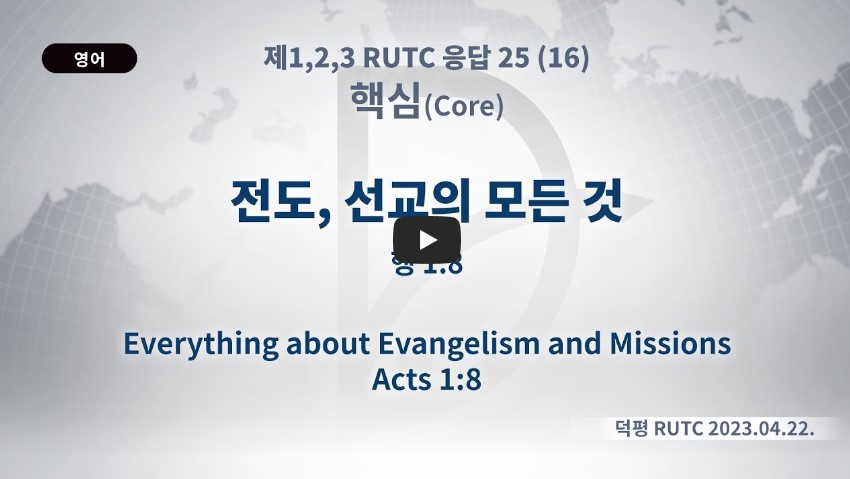 인터넷총국 (홈페이지 http://data.rutc.com) 후원: (국민은행) 856701-04-233309 (사)세계복음화전도협회 인터넷총국 분류 핵심훈련(2023-제123RUTC응답25)- 16 제목 전도, 선교의 모든 것 성경 사도행전 1:8 일