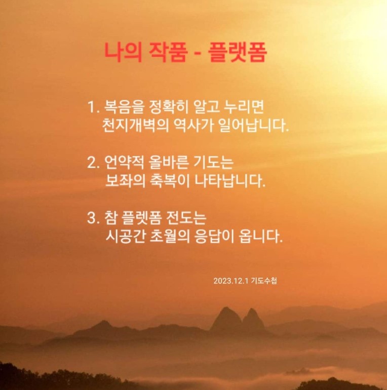 브리스가 부부는 바울을 도와 로마 복음화의 주역이 되었습니다. 이들처럼 응답받으려면 무엇을 해야 할까요? 우리를 향한 하나님의 절대 계획을 찾아야 합니다. 절대 계획을 찾지 못하는 이유는 기도의 행복과 기도의 힘을 실제로 모르기 때문입니다. 우리의 기도는 뇌에 각인되고 영혼 속에 파고들어 영원과 연결됩니다. 따라서 행복 속에서 힘을 얻는 24의 기도로 ‘나의 망대’를 만들어야 합니다. 기도 24가 되면 하나님의 나라인 25가 옵니다. 이때 보좌와 관계되는 영원이라는 응답이 옵니다. 이러면 성령의 내주와 성령 인도, 성령의 역사를 보게 됩니다. 이 속에서 성령 충만이라는 힘도 생기게 됩니다. 이때 절대 계획이 보이고, 세 가지 플랫폼이 만들어집니다.