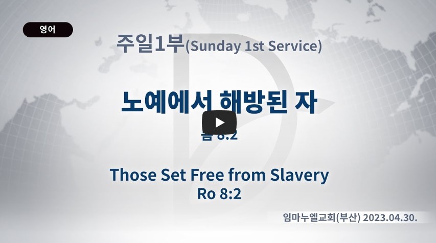 인터넷총국 (홈페이지 http://data.rutc.com) 후원: (국민은행) 856701-04-233309 (사)세계복음화전도협회 인터넷총국 분류 주일1부 예배- 2023년 제123RUTC응답 25 제목 노예에서 해방된 자 성경 로마서 8:2 일