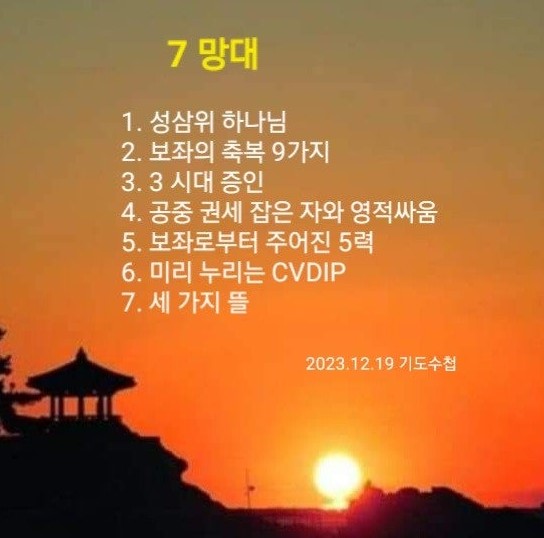 업에 빛을 비추는 망대를 세우면 7미션이 나옵니다. 오직의 방법으로 땅끝까지 하나님의 일을 전달하고, 나의 237을 찾아야 합니다. 기도의 능력과 비밀을 누릴 이면계약을 찾아야 합니다. 그리고 확실한 미래를 붙잡는 것입니다. 우리의 배경은 재림 주, 심판 주로 오실 그리스도입니다.