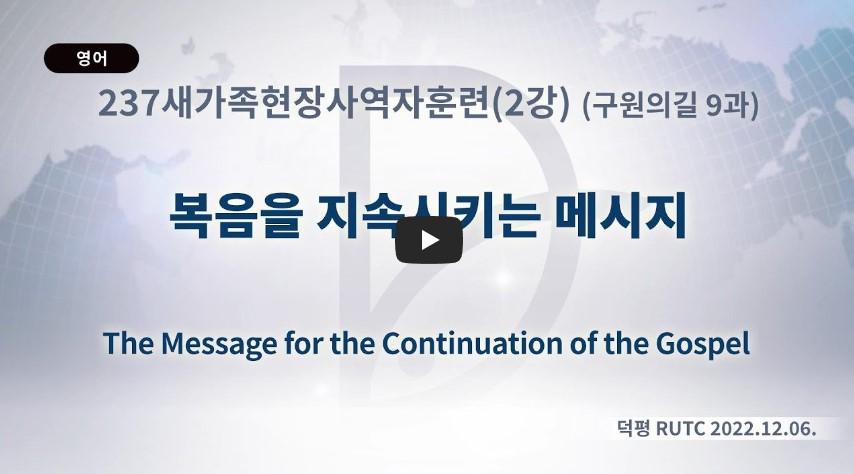 인터넷총국 (홈페이지 http://data.rutc.com) 후원: (국민은행) 856701-04-233309 (사)세계복음화전도협회 인터넷총국 분류 2022- 237새가족/현장사역자 수련회(구원의 길 교재) 제목 9과: (기존신자 대상) 복