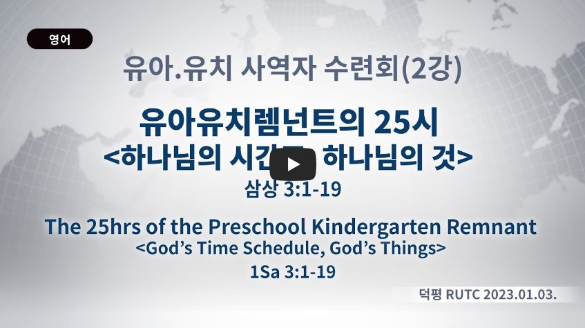 인터넷총국 (홈페이지 http://data.rutc.com) 후원: (국민은행) 856701-04-233309 (사)세계복음화전도협회 인터넷총국 분류 2023 제123RUTC 응답25- 유아유치 사역자수련회 제목 2강: 유아, 유치 렘넌트의 25시