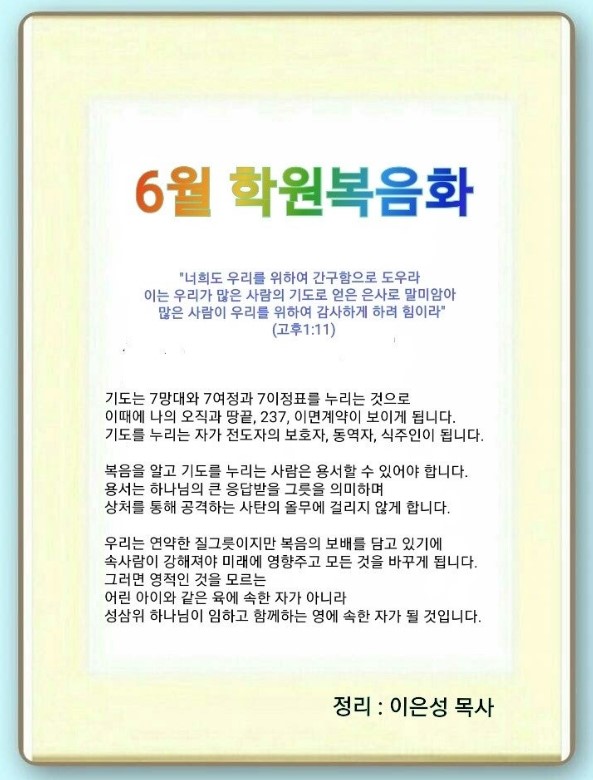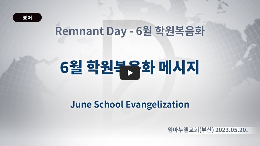 인터넷총국 (홈페이지 http://data.rutc.com) 후원: (국민은행) 856701-04-233309 (사)세계복음화전도협회 인터넷총국 분류 핵심훈련(2023-제123RUTC응답25)- 20 제목 (렘넌트데이) 6월 학원복음화 성경 고린도후