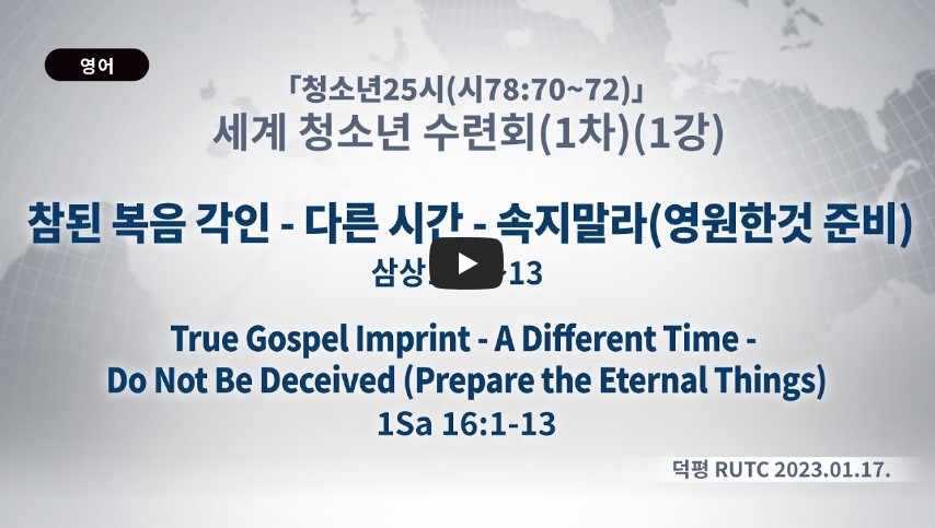 인터넷총국 (홈페이지 http://data.rutc.com) 후원: (국민은행) 856701-04-233309 (사)세계복음화전도협회 인터넷총국 분류 2023 제123RUTC 응답25- 세계청소년수련회 1차 제목 1강: 참된 복음 각인(다른 시간)