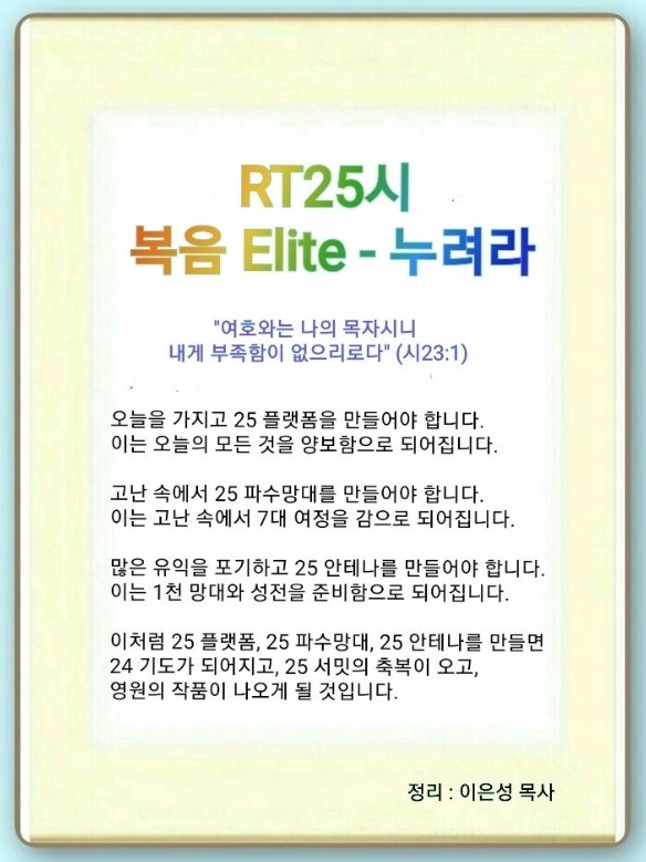 RT25시 - 복음 Elite - 누려라(영적 그릇)