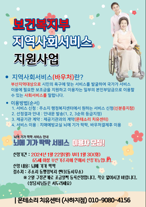 | 노인건강관리서비스(구)노인맞춤형운동서비스-바우처 (4) | 2024.12.27 |