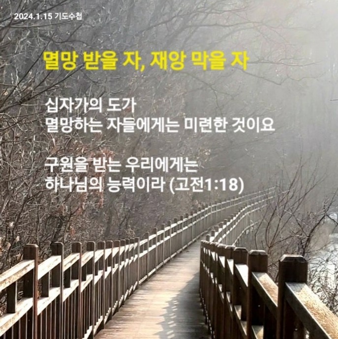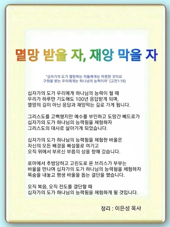 고린도전서 1:18-31 / 십자가의 도가 멸망하는 자들에게는 미련한 것이요 구원을 받는 우리에게는 하나님의 능력이라 (18)