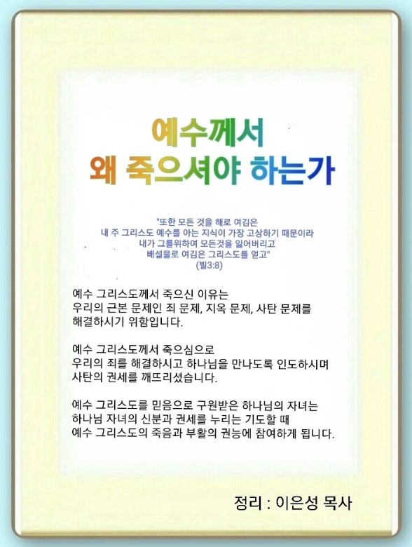 왜 예수께서 죽으셔야 하는가?(빌3:5-14)