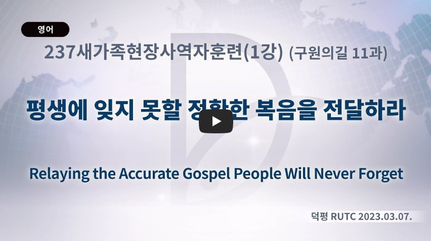 인터넷총국 (홈페이지 http://data.rutc.com) 후원: (국민은행) 856701-04-233309 (사)세계복음화전도협회 인터넷총국 분류 2023- 237새가족/현장사역자 수련회(구원의 길 교재) 제목 11과: “평생에 잊지 못할